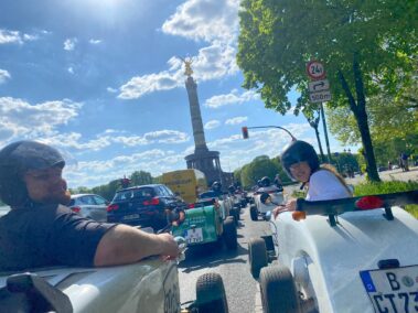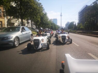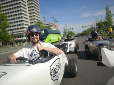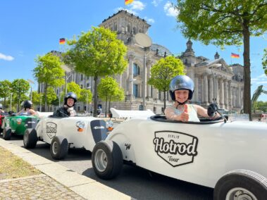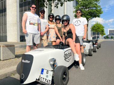 Los geht‘s über die Warschauer Brücke in Friedrichshain mit spektakulärem Blick auf die Berliner Skyline rüber nach Kreuzberg. Weiter fahren wir entlang der East Side Gallery, wo Kunstgeschichte unter freiem Himmel zelebriert werden kann. Angesteuert wird anschließend der sich stets wandelnde Alexanderplatz sowie zum krönenden Abschluss das Wahrzeichen der Preußenmetropole, das Brandenburger Tor. Die 90-minütige Sightseeing Rundfahrt bringt euch auf Touren und bietet alles was das Herz höher schlagen lässt. Sehen und gesehen werden ist garantiert.
