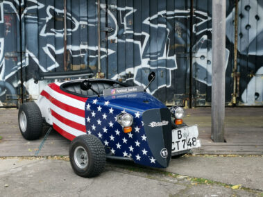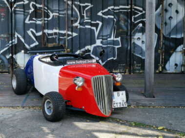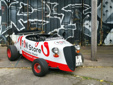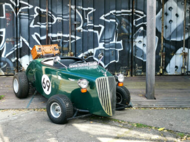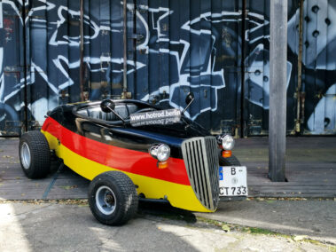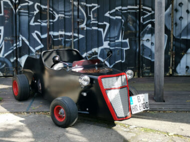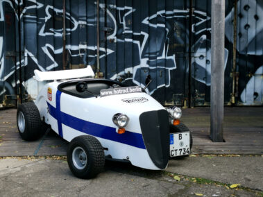 Bei uns erwartet dich eine spektakuläre Sightseeing Tour durch Berlin in unseren motorisierten Hotrods. Unsere Guides kennen die Straßen wie kein anderer. Viele bezeichnen uns als Seifenkisten, aber es sind aufgemotzte Mini Cars mit 13,6 PS, die dich an der Ampel von Null auf 50 km/h katapultieren werden.